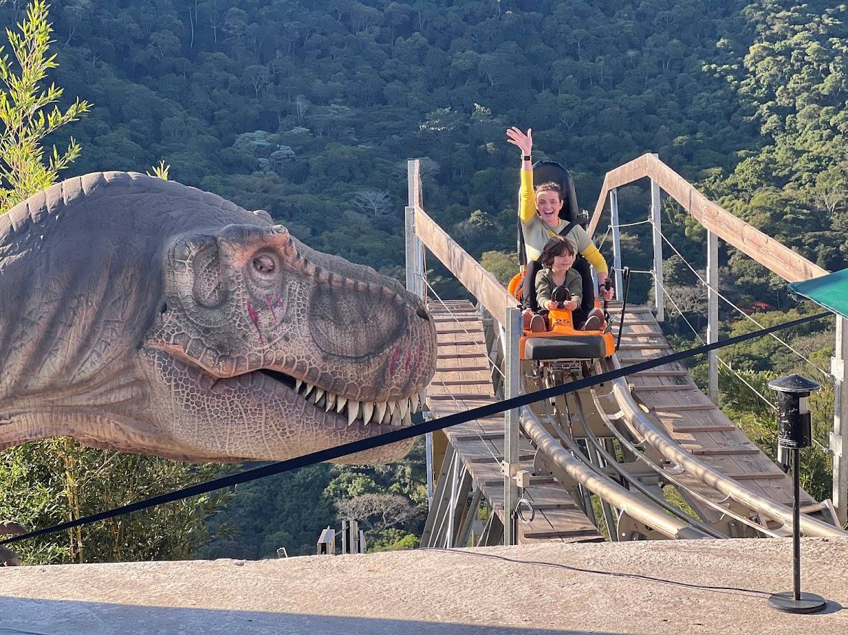 The newest addition to Terra dos Dinos is a cart ride called Mega Trenó, billed as "the largest mountain train ride in Latin America". This seems appropriate for the largest dinosaur park in Latin America. Each cart has its own handbrake, so you can control your own descent. Here's Calvin's Mega Trenó Ride Video.